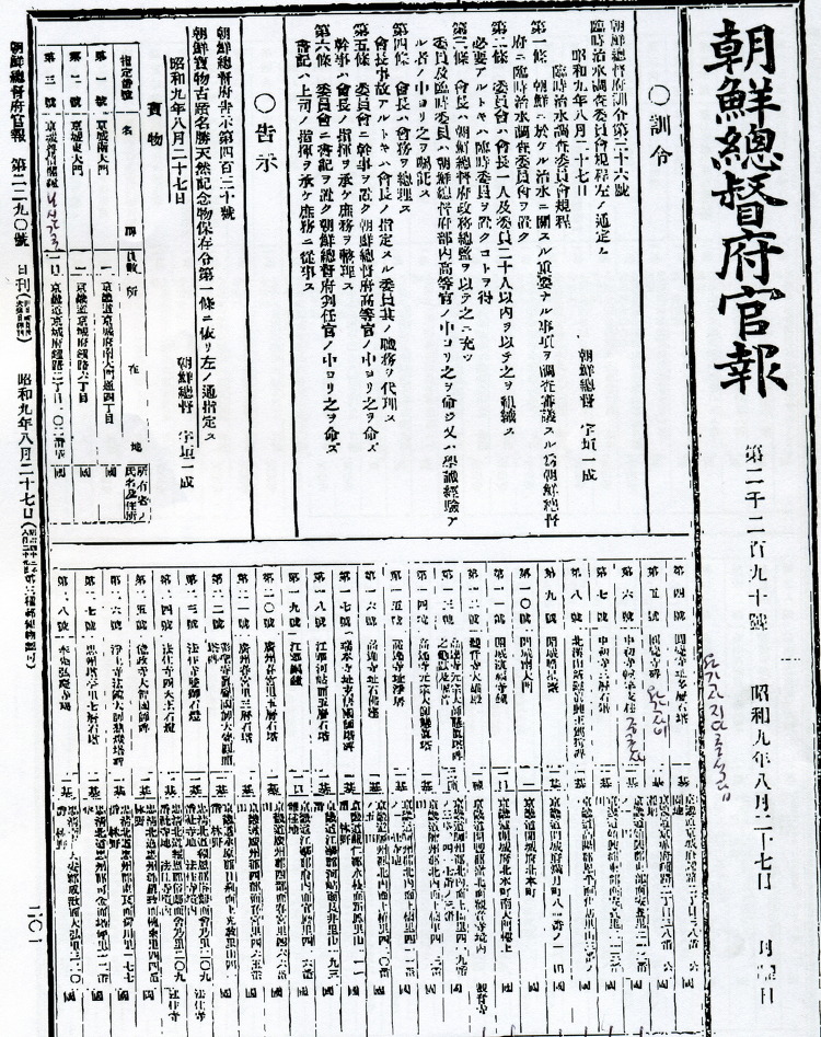 그 내막을 들춰볼까요. 1933년 12월5일이었는데요, 일제가 아주 특별한 조치를 취합니다.