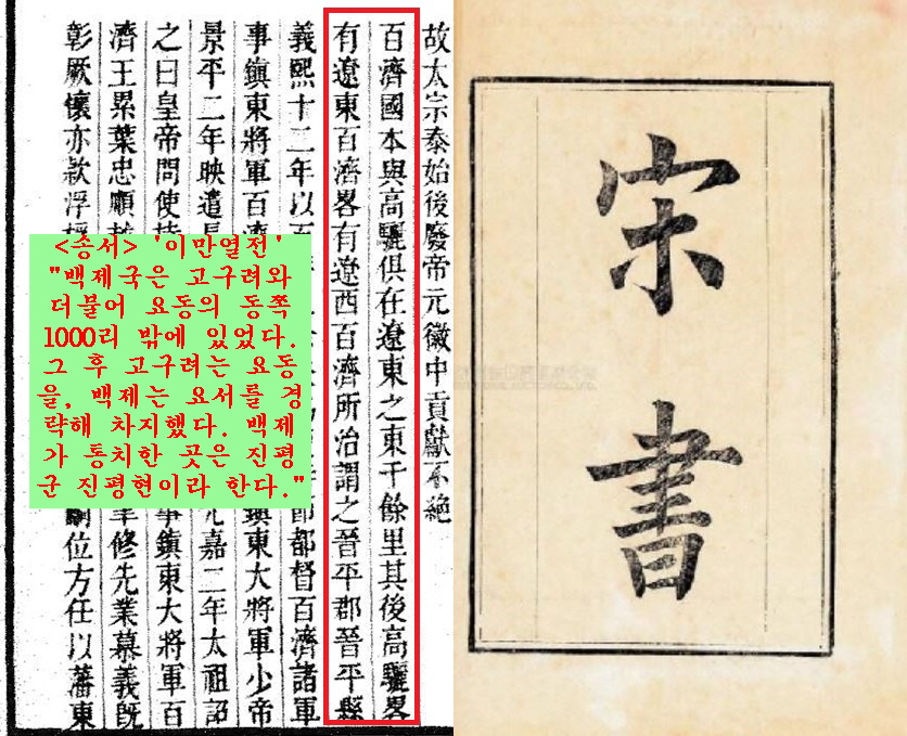 “백제국은 고구려와 더불어 요동의 동쪽 1000리 밖에 있었다. 그 후 고구려는 요동을, 백제는 요서를 경략해 차지했다. 백제가 통치한 곳은 진평군 진평현이라 한다.”