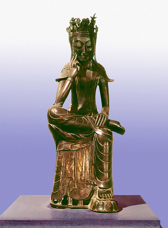 입가에는 고졸한 미소를 띠고 있구요. 그리고 자연스러운 반가좌의 자세, 몸 앞에서 교차된 천의자락과 허리띠의 율동적인 흐름은 세련된 조각 솜씨를 보여줍니다.