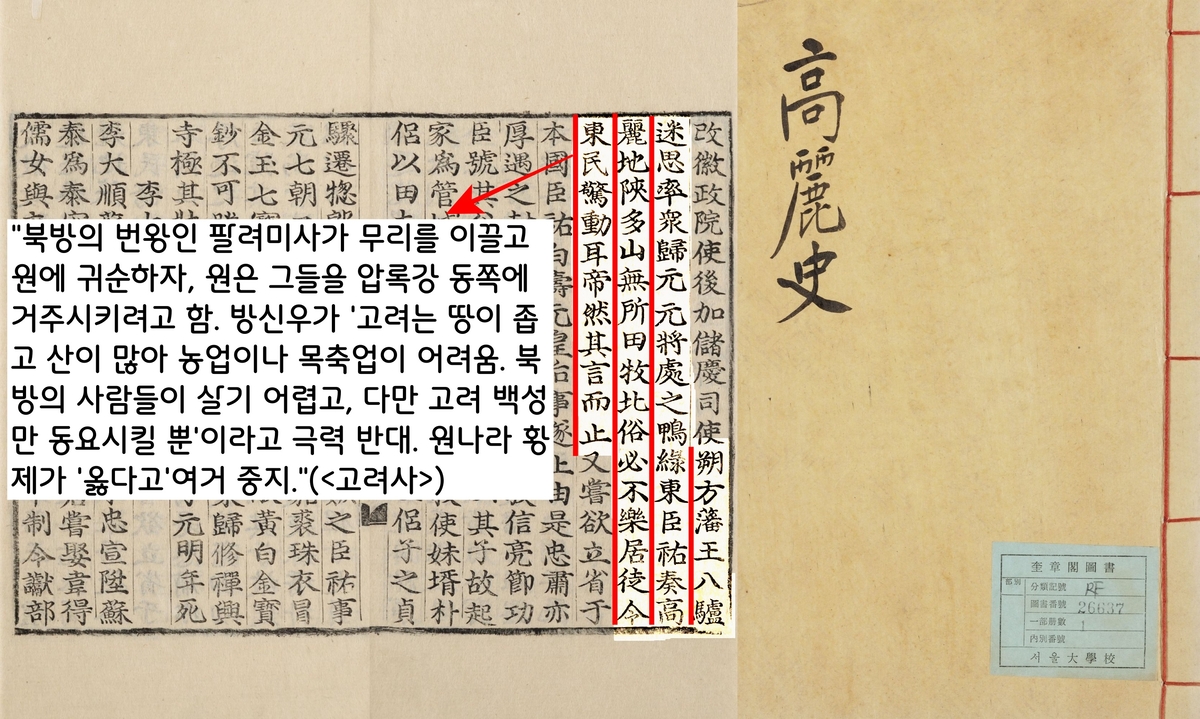 “고려는 땅이 협소하고 산이 많아 농사나 목축업이 불가능합니다. 북방인들이 편안하게 살지 못할 것이며, 동쪽민들을 동요시킬 뿐입니다.”