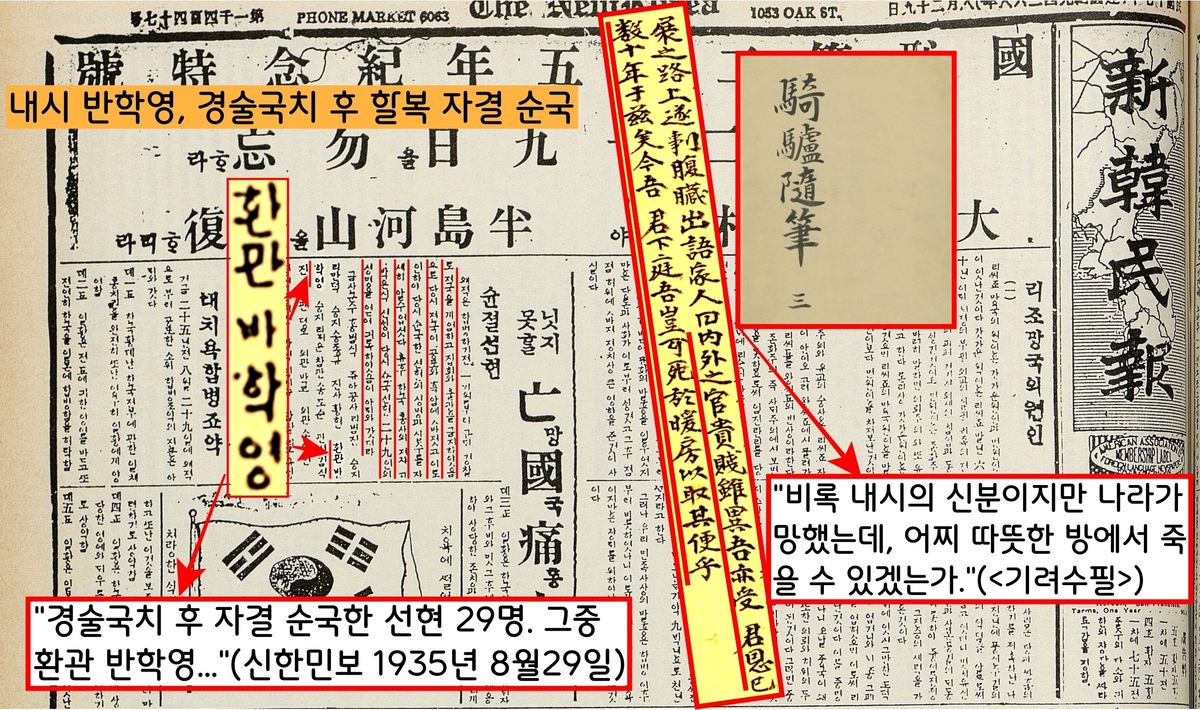 1910년 국권침탈 뒤 대로변에서 자결 순국한 내관 반학영의 한마디가 심금을 울린다. 반학영은 “비록 내시의 몸이지만 나라가 망했는데 어찌 내가 따뜻한 방에서 죽을 수 있단 말인가.”라 외쳤다.
