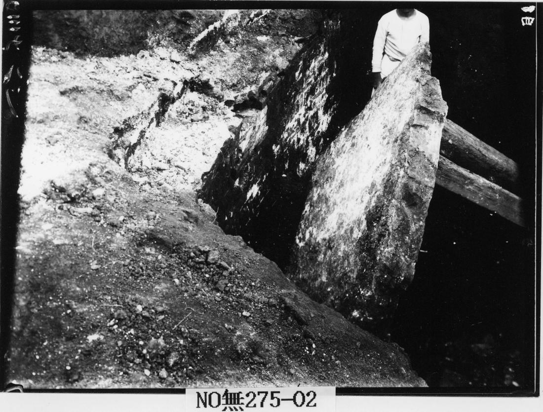 세키노는 도굴범이 바닥에 깔려있던 대형 판석을 일으켜 세운 뒤 그 밑의 부장품을 꺼낸 흔적으로 판단했다.