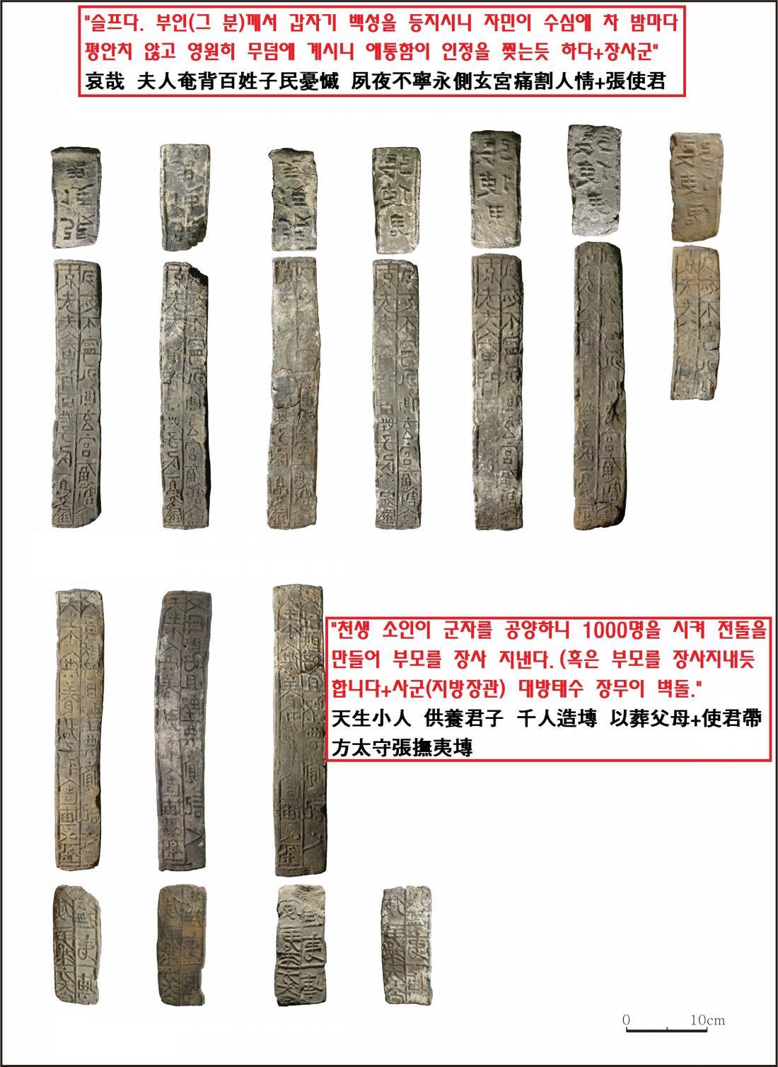 또 무덤 주인공의 장사를 위해 벽돌(전돌)무덤을 조성했음을 알린 ‘애도문’ 형식의 ‘명문벽돌’도 출토됐다.
