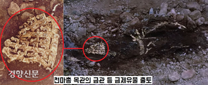 그런데 금관 상자를 무덤 밖으로 옮기자 암흑천지였던 하늘이 구름 한 점 없이 개었다는 겁니다.