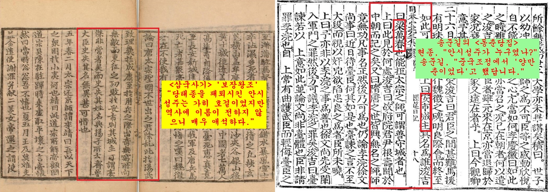 그런데 조선조 현종(1659~1674) 때의 일이다. 1669년(현종 10) 열린 경연에서 “안시성주가 누구냐”는 현종의 질문에 송준길(1606~1672)이 다음과 같이 대답한다.