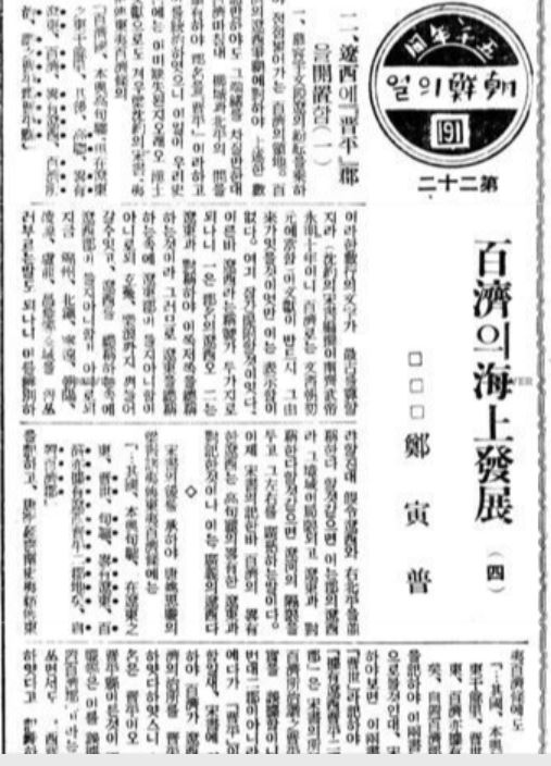 정인보(1893~1950)는 “백제는 영가의 난(307~312)으로 중국이 남북으로 나눠진 이후 산동과 요동·요서에서 해양패권을 장악했다”면서 “시기는 전연(337~370)이 멸망하는 370년(근초고왕 25)”이라고 특정했다.