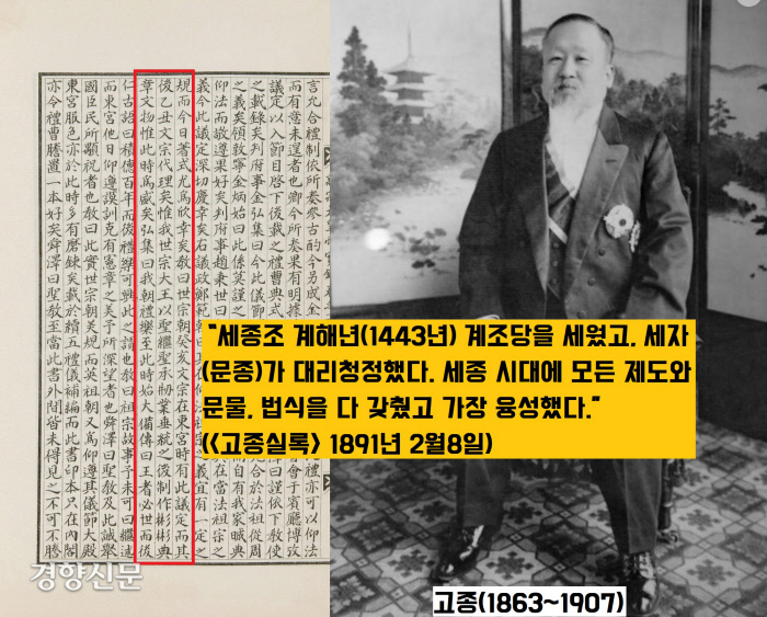 “1443년 계조당을 세웠고, 세자(문종)가 곧 대리청정했다. 세종 시대에 모든 제도와 문물, 법식을 다 갖췄고 가장 융성했다.”(<고종실록> 1891년 2월8일)