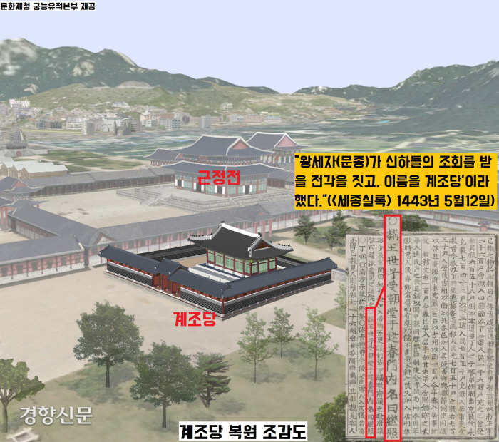 <세종실록>은 “왕세자(문종)가 신하들의 조회를 받을 전각을 건춘문 안에 짓고, 이름을 계조당’이라 했다”고 했습니다.