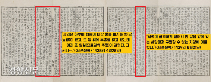 “하루에 한동이 이상 물을 마시는 병(당뇨병)이 있고, 또 등 위에 부종(浮腫)을 앓고 있는데… 이제 또 임질(淋疾·성병이 아니라 요로결석으로 추정)이 걸렸다. 그러니….”(<세종실록> 1438년 4월28일)