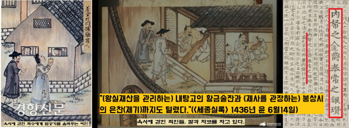 “(왕실재산을 관리하는) 내탕고의 황금술잔과 (제사를 관장하는) 봉상시의 은찬(銀瓚·제기)까지도 털렸고…온 백성이 들끓는 도둑들을 원망하며 그 고기를 씹고자 해도 어쩔 줄 몰랐다”는 기사(<세종실록> 1436년 윤 6월14일)도 등장합니다.