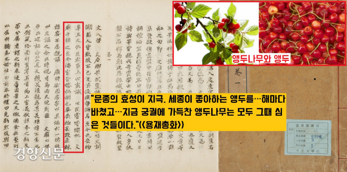 이 이야기를 전한 성현(1439~1504)은 “지금도 궁궐 안에 온통 앵두나무만 자란다”(<용재총화>)고 전했습니다.