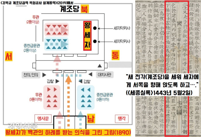 <세종실록>은 “왕세자(문종)가 신하들의 조회를 받을 전각을 건춘문 안에 짓고, 이름을 계조당’이라 했다”고 했습니다.