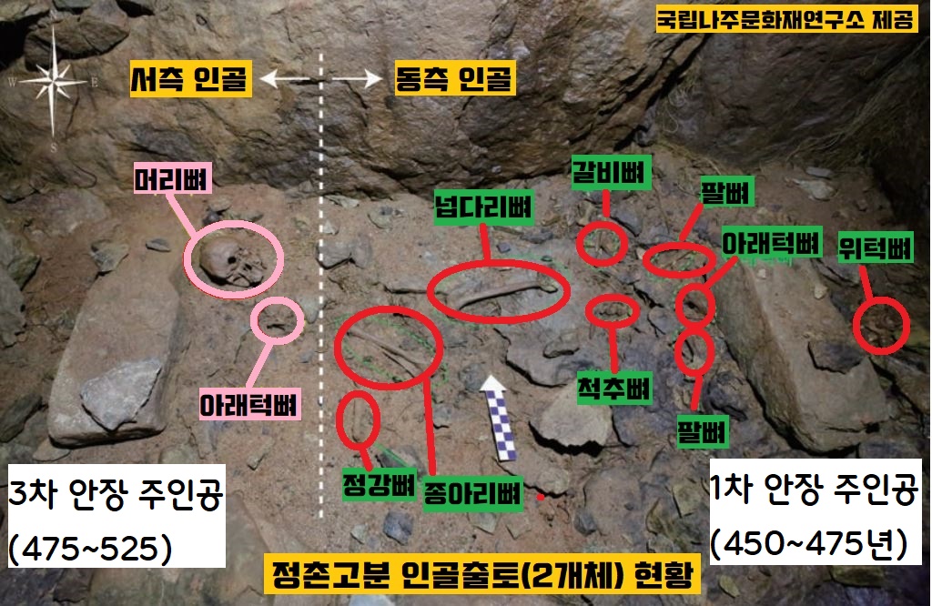 인골이 땅속에 묻혀있다가 나온 게 아니라 고분의 돌덧널(석곽) 안에서 노출된 것을 확인했기 때문이다.