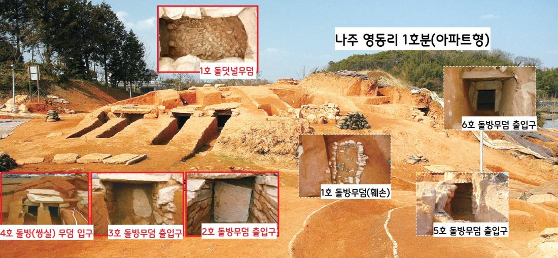나주 영동리 1호분의 발굴모습. 아래 위로 다양한 형식의 고분이 집중된 아파트형 고분이다.|동신대 영산강문화연구센터 제공
