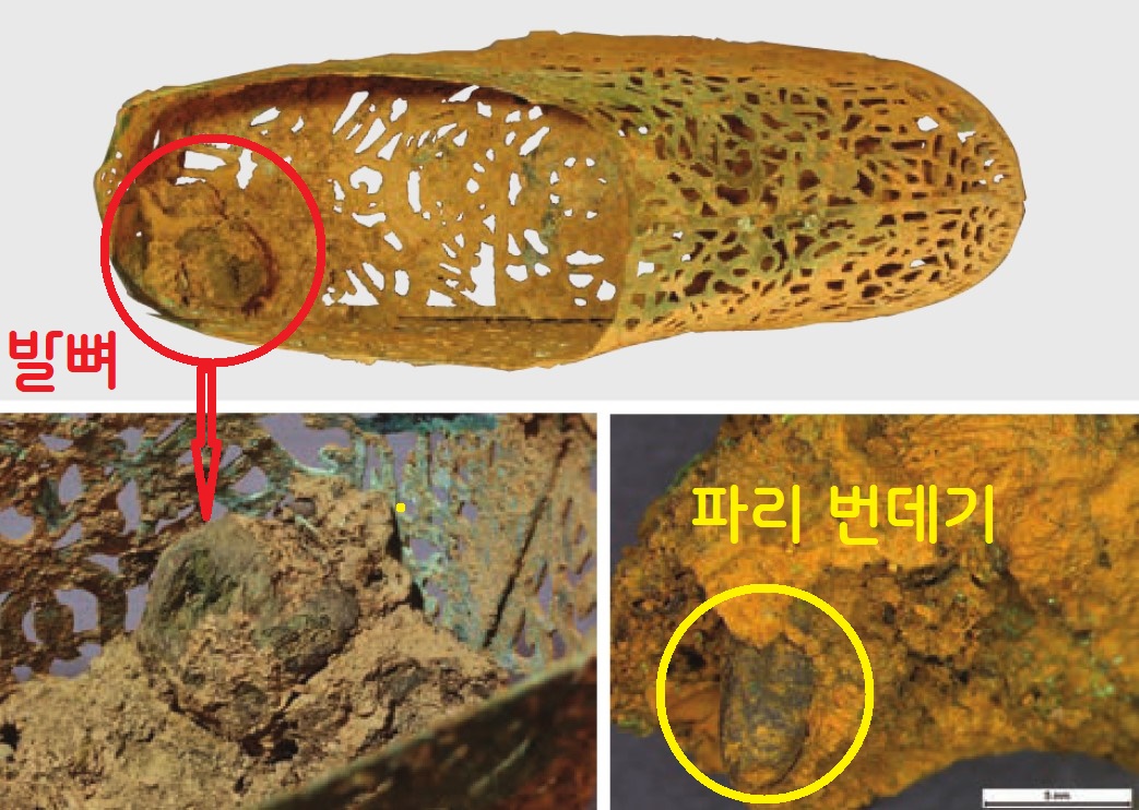 정촌고분 출토 금동신발에서는 주인공의 발뼈와 함께 다량의 파리번데기 껍질이 확인됐다.|국립나주문화재연구소 제공