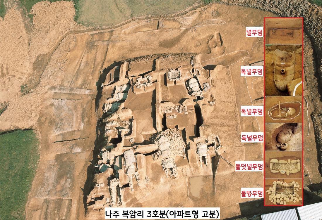 1996년 발굴된 나주 복암리 3호분. 아파트형 고분으로 조성된 나주 복암리 3호분. 영산강 유역에서 산 사람들이 400년 동안 대를 이어 켜켜이 조성한 무덤이다.|국립나주문화재욘구소 제공