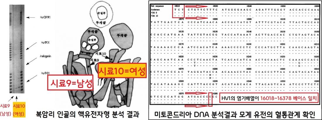 미토콘드리아 DNA의 분석은 더욱 흥미로웠다. 두 인골은 모계 유전 간의 혈통관계로 추정됐다.