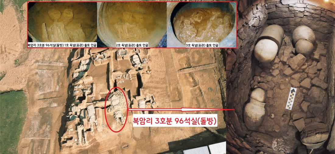 연구소의 분석 결과 독널(옹관) 3호의 왼쪽 인골(남성)과 오른쪽 인골(여성)은 남녀로 판단됐다.