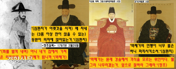 심환지는 정조의 거둥을 수행하던 박제가가 호상(胡床·등받이 있는 접이 의자)에 앉아있는 모습을 보고 빈정이 상했답니다.