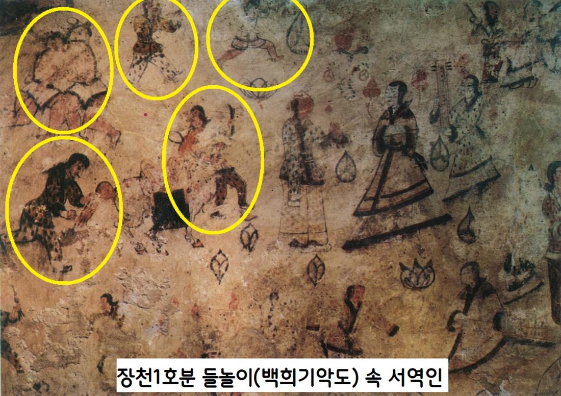 약수리·대안리 1호분·수산리·안악2호분·쌍영총·삼실총 등 4~7세기 고분 벽화에 등장하는 문지기 혹은 역사 가운데 상당수가 서역인이다.