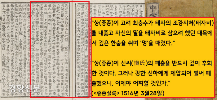 “1516년 3월28일 <고려사>(‘세가·명종’)를 읽던 상(중종)이 깊은 한숨을 쉬며…‘멍’하니 있었다.”(<중종실록>)