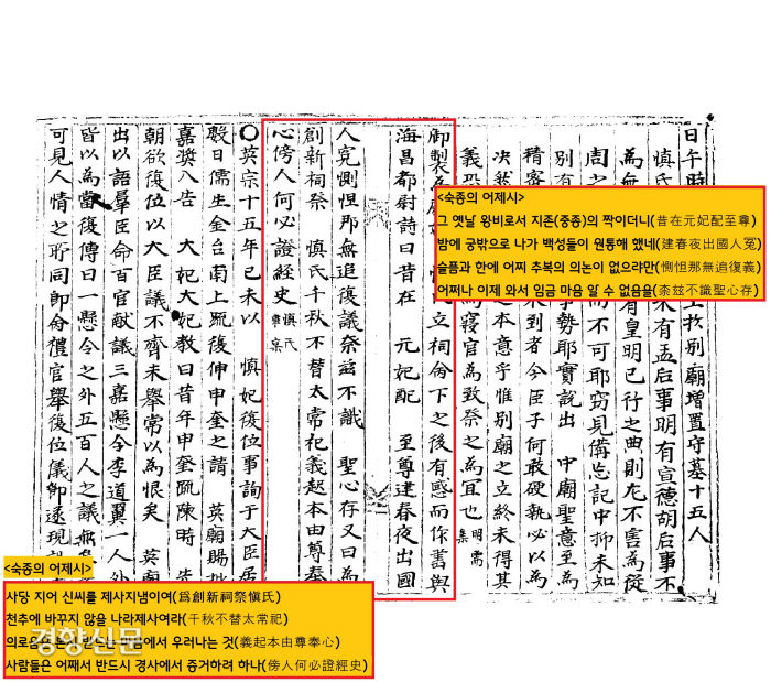이때 숙종의 명에 따라 대신·종친·문무백관들이 궁정에 총출동했고요. 또 지방 대신 및 유신들의 의견까지 자그만치 491명의 의견을 모았습니다. 찬반 여론이 워낙 팽팽하자 숙종은 “참으로 난처한 측면이 있다”고 토로했는데요.
