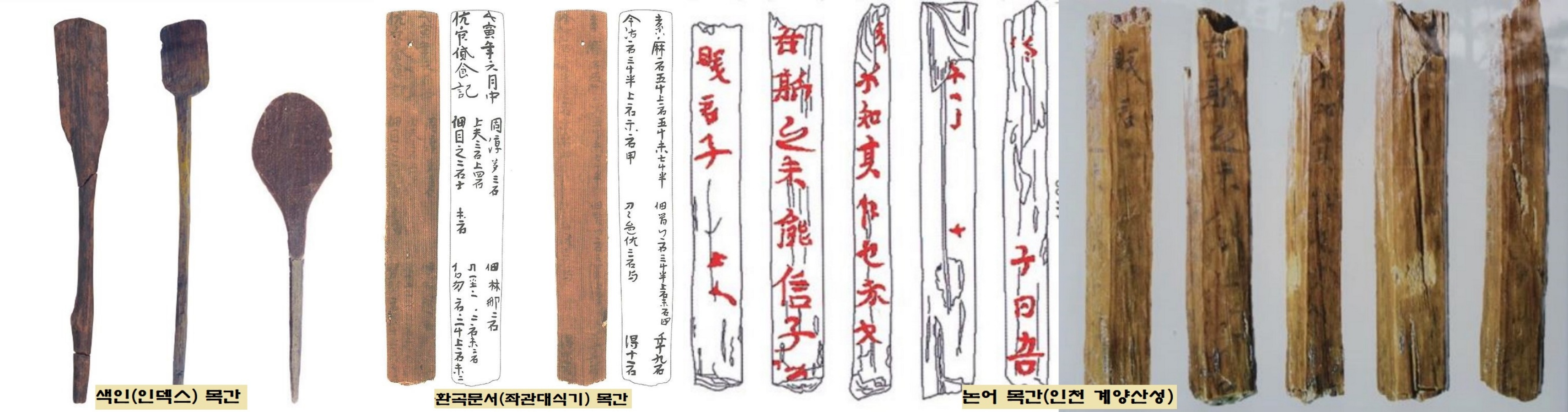 인천 계양산성에서 확인된 것처럼 <논어> 제5장인 ‘공야장’이 일부내용이 적힌 경전 목간도 있습니다. 책처럼 지니고 다니면서 ‘공자왈 맹자왈’을 공부한 거죠. 궁궐 출입 때 신분을 증명하는 이른바 부신용 목간도 있고, 창고정리용 목간도 나옵니다.