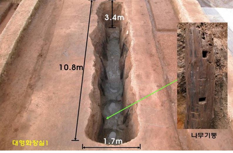 그런데 2003년이었습니다. 전북 익산 왕궁리 유적을 발굴하던 국립부여문화재연구소는 길이가 10.8m나 되고 폭 1.7~1.8m에, 잔존깊이가 3.1m나 되는 대형 지하구덩이를 발굴했습니다.
