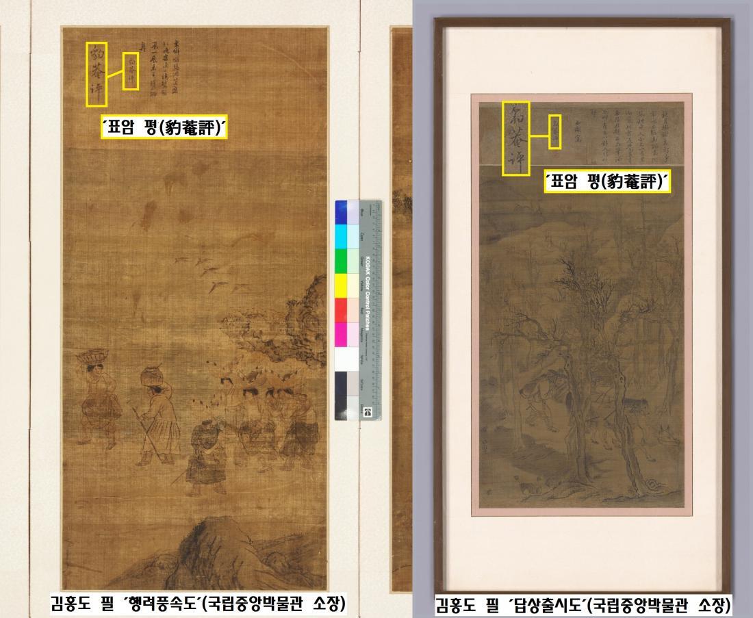 ‘표암 평(豹菴評)’의 멘트가 달려있는 단원 김홍도의 작품들. 표암 강세황은 김홍도 같은 전문화원에게 주로 ‘표암 평’의 멘트를 달아주었다.