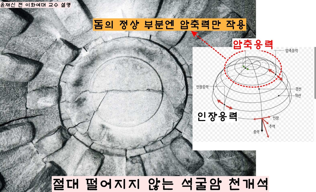 콘크리트 돔 관련해서 부연 설명이 필요하다. 19세기 초 포틀랜드 시멘트 발명 이후 1867년 프랑스에서 철망으로 보강한 콘크리트가 본격적인 ‘콘크리트 공법’의 시작이었다. 따라서 1913~15년 일제가 석굴암 수리공사에 활용한 콘크리트 돔 공사는 당대로서는 첨단기법이었다.