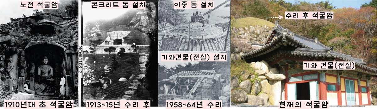 “…석굴암의 벽면석 뒤에 석회를 두텁게 넣어 굴 내 습기가 가득…조각이 항상 젖어 있다.(동아일보 1948년 10월14일)