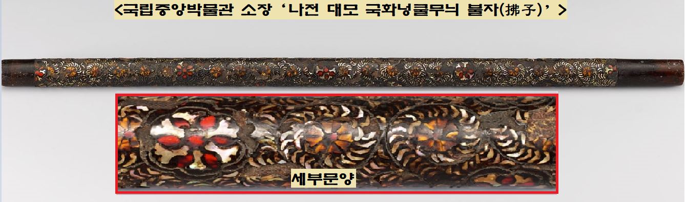 고려 장인들이 그렇게 극한의 작업을 통해 제작한 나전은 얼마 남아있지 않습니다. 경전함, 염주함, 향합(향을 넣는 그릇), 불자(拂子·불교의식용 도구) 등까지 해서 전세계 22점 정도만 현전하고 있습니다.