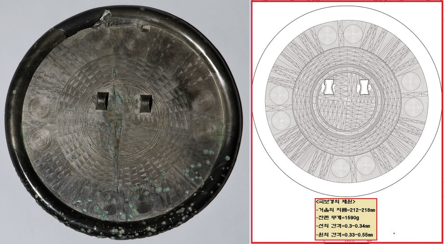 숭실대 소장 국보경(66대 34)은 고대 청동거울의 황금비와 견주면 단 1% 정도의 오차가 보였습니다.