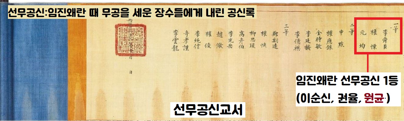 그렇지만 원균은 전쟁 후 이순신·권율(1537~1599)등과 함께 나란히 ‘선무1등공신’으로 책록됐습니다.
