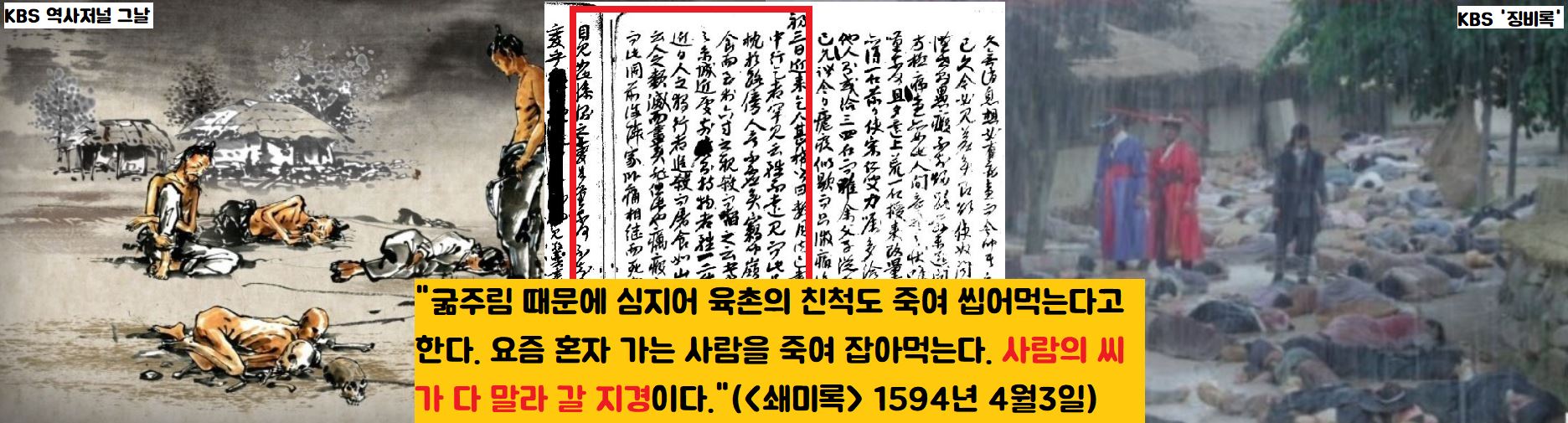 “길에서 굶어죽은 사체 곁에서…두 아이가 울고 있었다. 그 어미라 하는데, 뼈를 묻으려 해도 힘이 없어….”(1594년 2월14일)라는 내용은 새발의 피였습니다. “굶주림 때문에 심지어 육촌의 친척도 죽여 씹어먹는다고 한다”(1594년 4월3일)고 고발합니다.