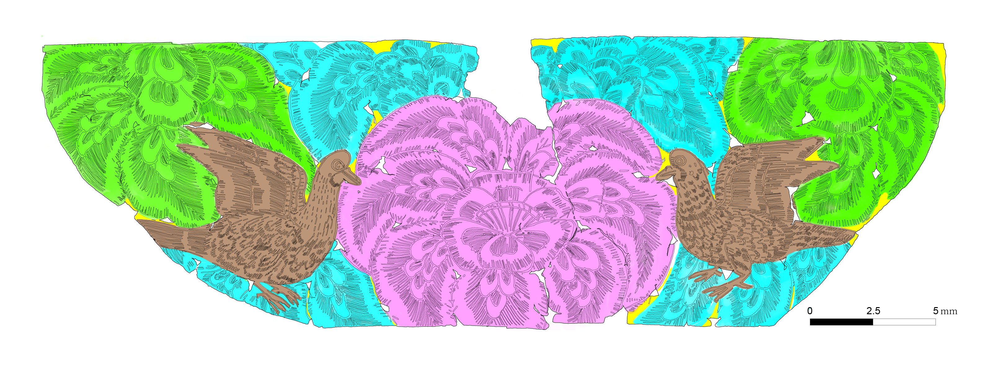그 후 수습유물을 목록으로 작성하는 과정에서 놀랄만한 일이 벌어집니다. 두 물체를 꺼내 봤더니 문양의 패턴이 흡사했고, 그것을 이어보니 아! 그것은 하나의 완성된 작품이었습니다.