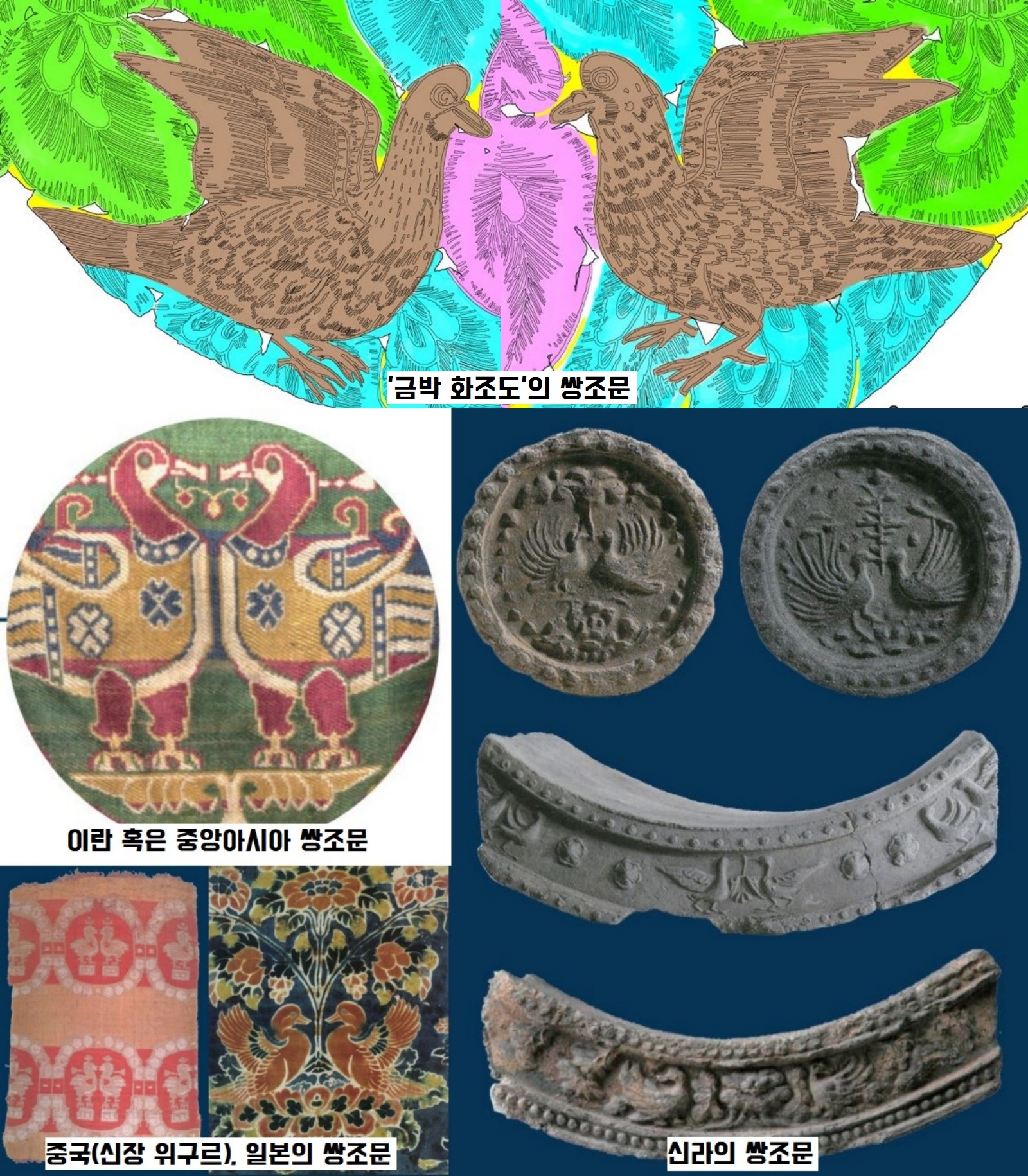 왜 쌍조문을 새겼을까요. 쌍조문의 문양적인 모티브는 서역과 동북아시아에 확인됩니다.