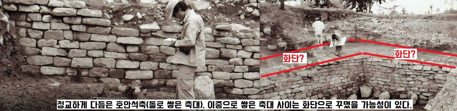 정교한 호안석축(강변의 흙이 무너지는 것을 막기 위해 돌로 쌓은 축대 시설)이 확인됐구요.