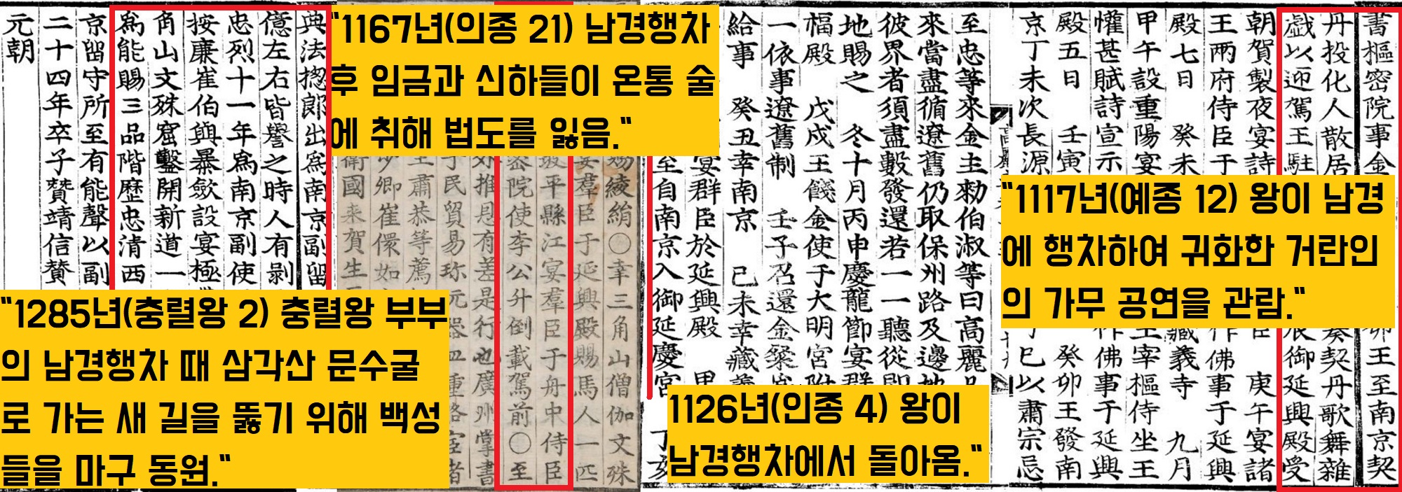 남경행차 기록은 1330년(충혜왕 즉위년)에도 보인다. “왕이 견주(양주)에서부터 남경을 순행하고 돌아왔다”는 <고려사> 기사가 그것이다.