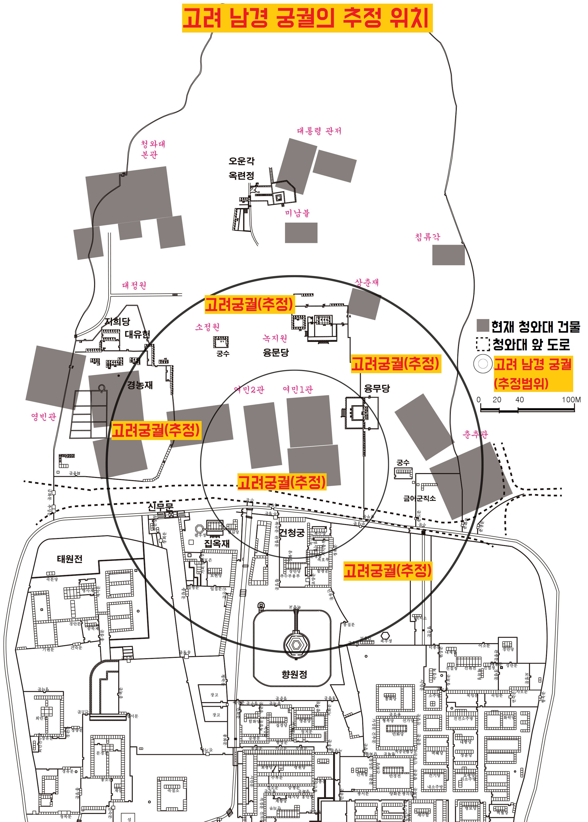 또한 개성 고려 궁성의 남북길이는 대략 400m 정도된다. 그렇다면 남경의 궁궐은 남으로는 향원정(혹은 흥복전)에서 북으로는 상춘재(청와대)까지 존재했을 가능성이 있다는 것이다.