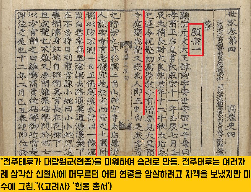 대량원군, 즉 현종은 결국 천추태후의 강압 속에 머리를 깎고 승려가 됐다.