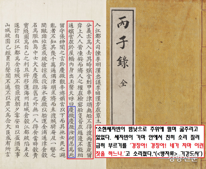자신의 가솔과 절친한 친구들을 강화도로 먼저 건너가게 하려고 다른 사람들의 출입을 막았습니다. 피란민들이 수십리나 줄을 서서 기다려야 했는 데도요. 심지어 소현세자빈(강빈·1611~1646)마저 이틀 동안이나 밤낮을 굶주리며 기다려야 했습니다. 오죽했으면 세자빈이 “경징아 경징아, 어찌 이럴 수 있느냐”고 외쳤겠습니까.