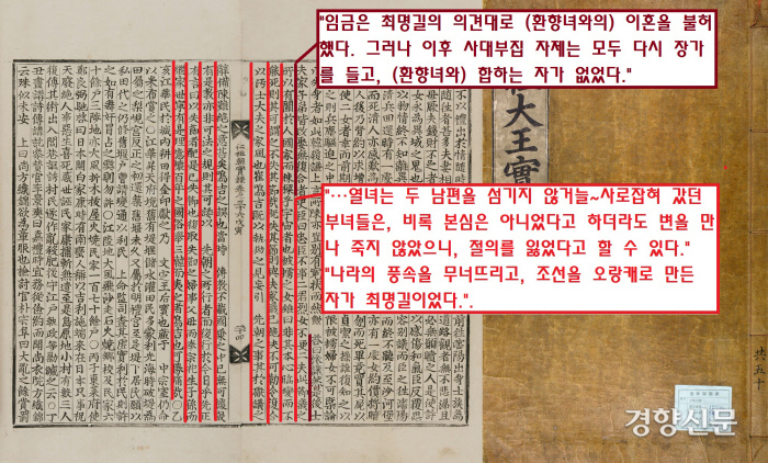 “…열녀는 두 남편을 섬기지 않거늘~사로잡혀 갔던 부녀들은, 비록 본심은 아니었다고 하더라도 변을 만나 죽지 않았으니, 절의를 잃었다고 할 수 있다.”