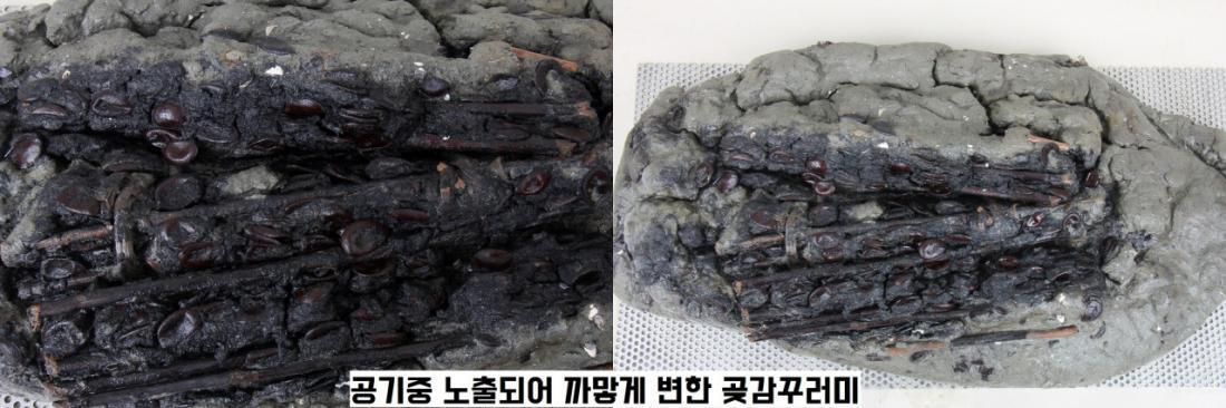 그렇다면 당시 수장고에 들어간 곶감꾸러미 중 개흙 속에 남아있는 부위는 붉은 색을 유지하고 있을까. 발굴 유물은 보존처리를 통해 말끔하게 복원되곤 하는데, 800년전의 곶감이 붉은 과육, 그대로의 모습을 되찾게 될 지 기대가 된다.