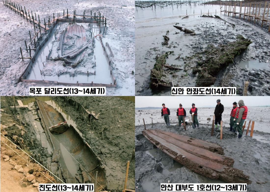 1991~92년 진도의 갯벌에서 확인된 ‘진주선’은 13~14세기 중국 배일 수도 있고, 왜구의 약탈선일 가능성이 제기되고 있다. 2010년 인천에서 확인된 ‘영흥도선’은 통일신라시대(8세기 후반)의 선박으로 추정된다.