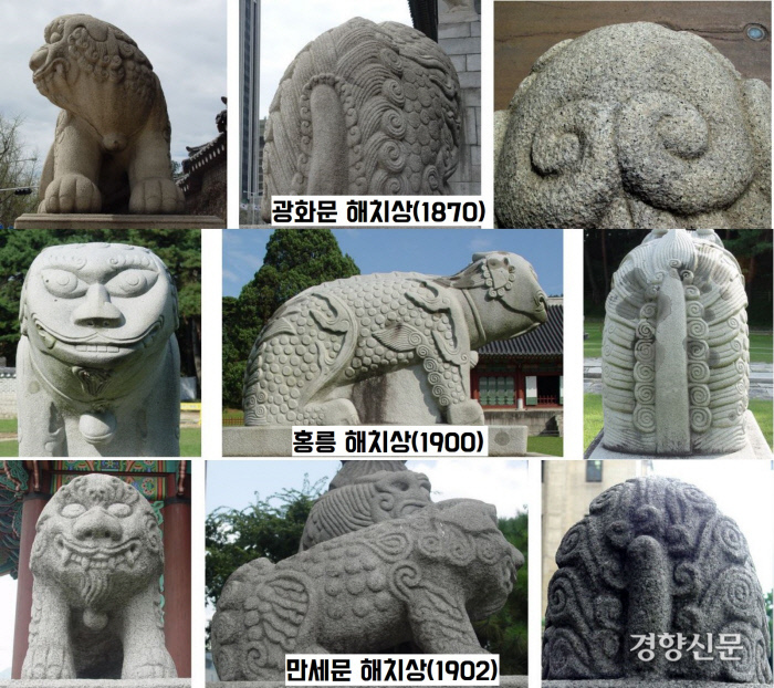 그러다가 1867~70년 사이 완성된 광화문 해치상을 기점으로 중국과는 다른 독창적인 모습이 정립됐다는 겁니다. 이를테면 사자의 몸을 갖고 있는 신양(神羊)의 형태로요. 그런 모습은 중국에는 없답니다.