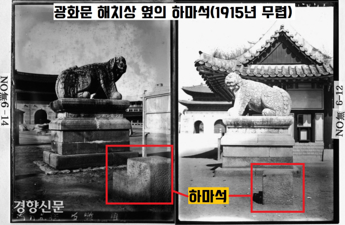 어쨌든 이러한 우여곡절 끝에 철거되었던 해치상은 1929년 11월29일 조선총독부 건물(중앙청) 뜰 앞으로 옮겨졌는데요.