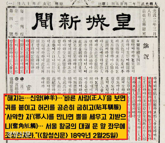 그중에서도 신양(神羊·신령스런 양)이 주목된다는데요. 황성신문 1899년2월25일자를 볼까요.
