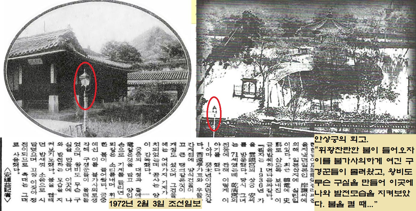 사상 처음으로 전등불이 켜지는 모습을 보려고 인산인해를 이뤘다고 하는데요. 당시 이 모습을 숨어서 지켜봤다는 안상궁(1936년)의 회고담이 재미있습니다.