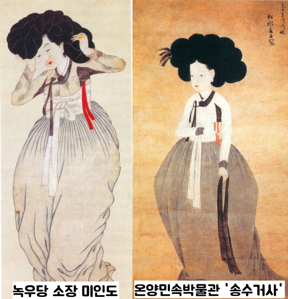여성성을 강조한 새로운 스타일, 이것을 ‘하후상박(下厚上薄) 치마저고리’라 일컫는다.